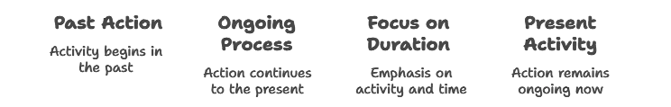 The Present Perfect Continuous tense is fundamentally defined by its reference to an activity that began in the past and continues without interruption to the present moment. This action is described as progressing from a past starting point and extending forward into the current reality. For example, the statement, “She has been working for the company for a long time,” indicates an action that started in the past and remains ongoing.